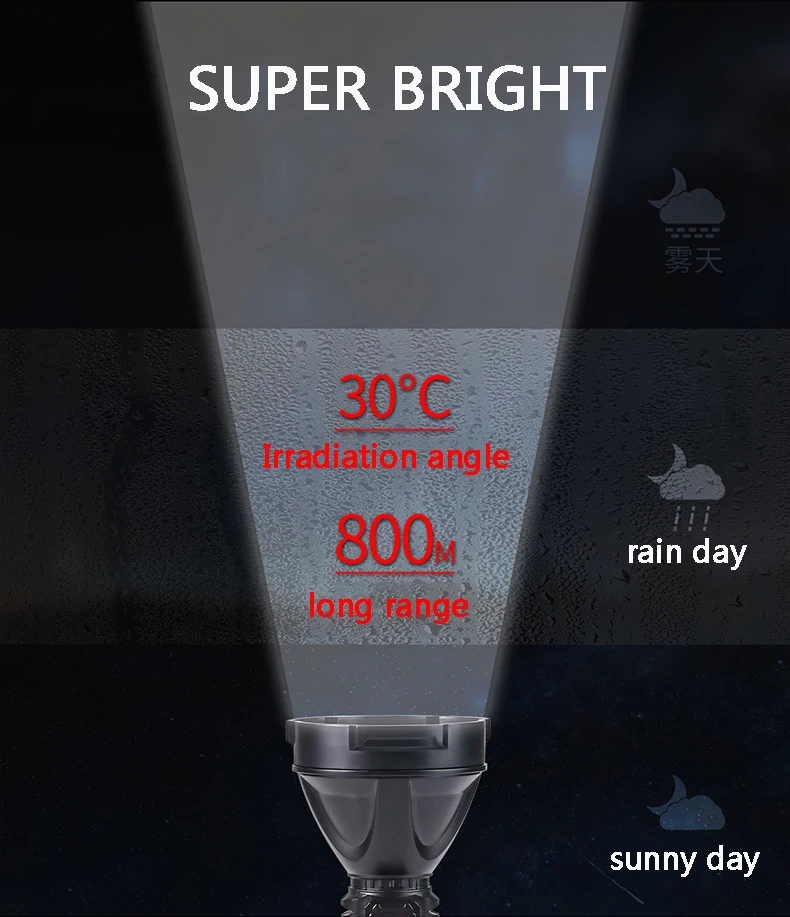 Светодиодный фонарик 500 м с дальностью действия, фонарик со встрое...