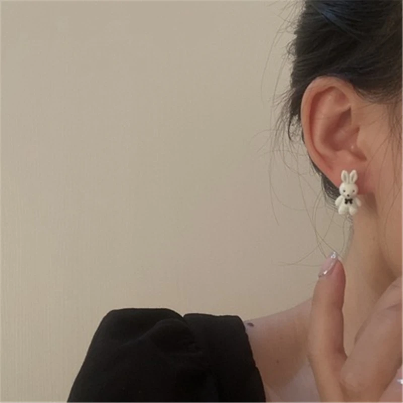 Корейские милые серьги с бантом в виде кролика, медведя, новинка 2021, простые и маленькие милые забавные серьги в стиле Ins, ветер, лес, девочка, милые уши, ювелирные изделия для девочек, подарок