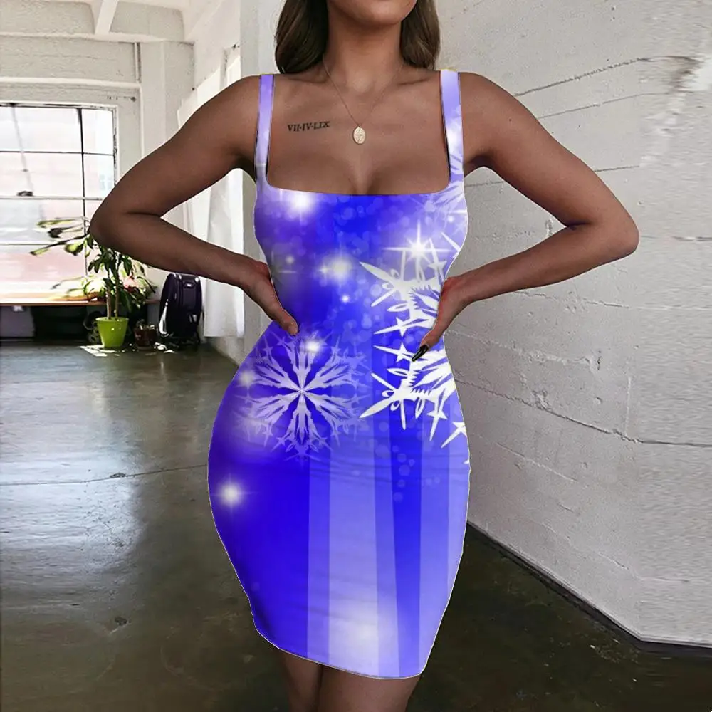 Женский новогодний сарафан KYKU, с лямкой на шее и снежинками, лето