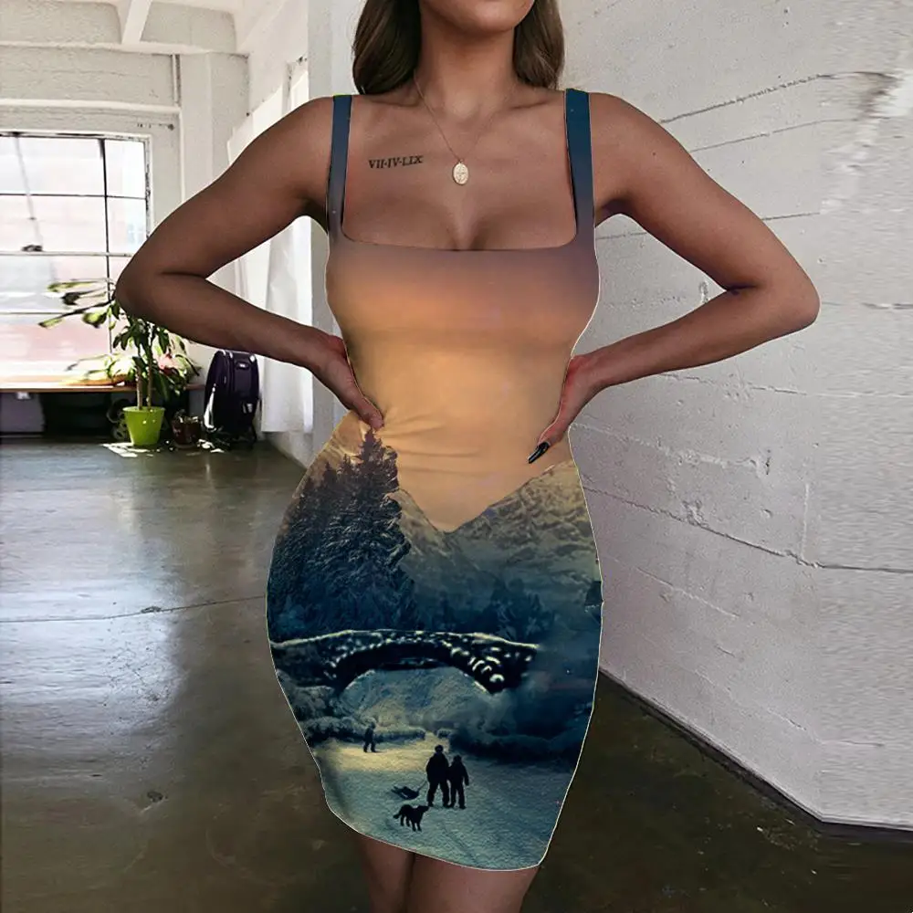 Женское облегающее платье KYKU, летнее пляжное платье с 3D-принтом,...