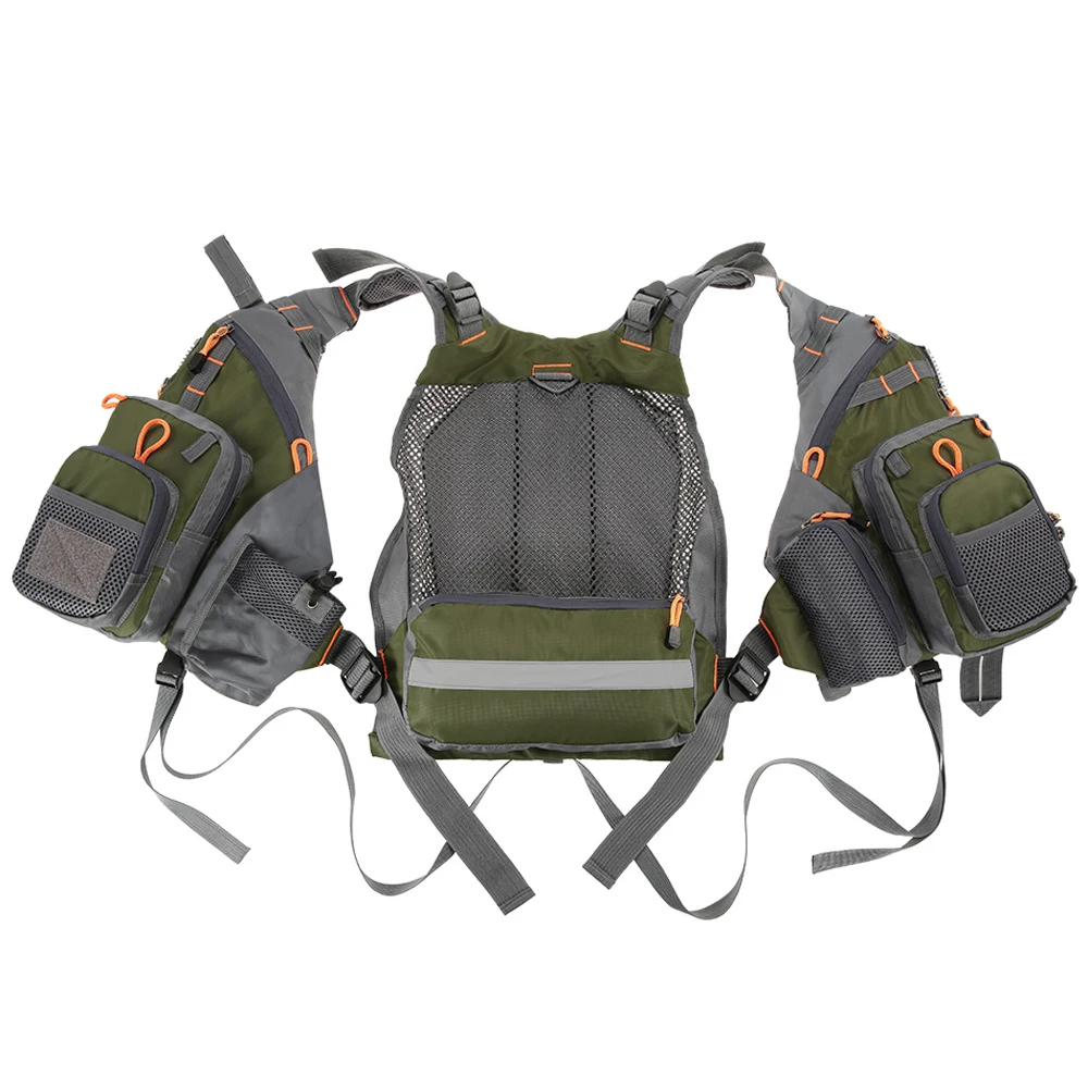 Этот спасательный жилет для рыбалки больше похож на наружный жилет с 10 карманами на молнии, 1 карманом для бутылки с водой и несколькими прикрепляемыми лестницами и аксессуарами петлями на передних и широких отражателях на спине и плече. Под внешним видом это полностью функциональное Флотационное устройство, которое отстегивается для работы в качестве переносчика рыболовных снастей. И этот жилет подойдет практически любому человеку из-за переплетенных регулируемых ремней с пряжкой. Если ваш главный приоритет-это хранение снаряжения, этот спасательный жилет-один из видов. Отлично подходит для рыбалки, КАЯКОВ, каноэ (практически любой тип рыбалки).Особенности:Изготовлен из высококачественного полиэфирного корпуса ripstop и заменяемой пены EPE внутри для превосходной плавучести.Внутри застежка-молния позволяет удобно снимать плавающий пенопласт, чтобы быть супер тонким и дышащим жилетом.Четыре вместительных нагрудных кармана, четыре передних кармана на молнии, один боковой сетчатый карман, один карман для бутылки с водой и один вместительный задний карман в общей сложности.Аксессуары петли и крепления лестницы на груди приглашают на заказ вложения.Сетка на спине и сетчатая ткань внутри обеспечивают высокую воздухопроницаемость.Открытые стороны оставляют вам больше места для весла, бросания или наведения на воду.Многоярусные регулируемые ремешки с пряжкой подходят практически для любого человека.Отражатели на спине и плечах обеспечивают профессиональную безопасность для спасения жизни.Отлично подходит для ловли нахлыстом, КАЯКОВ, каноэ (довольно много любого типа рыбалки).Характеристики:Цвет: зеленыйМатериал: полиэстер + пена EPEМаксимальный подшипник: 95 кг/209.44lbРазмер изделия: 53*47 см/20,87*18,50 дюймовВес: 700 г/1,5 фунтаПосылка:1 * спасательный жилет для рыбалки