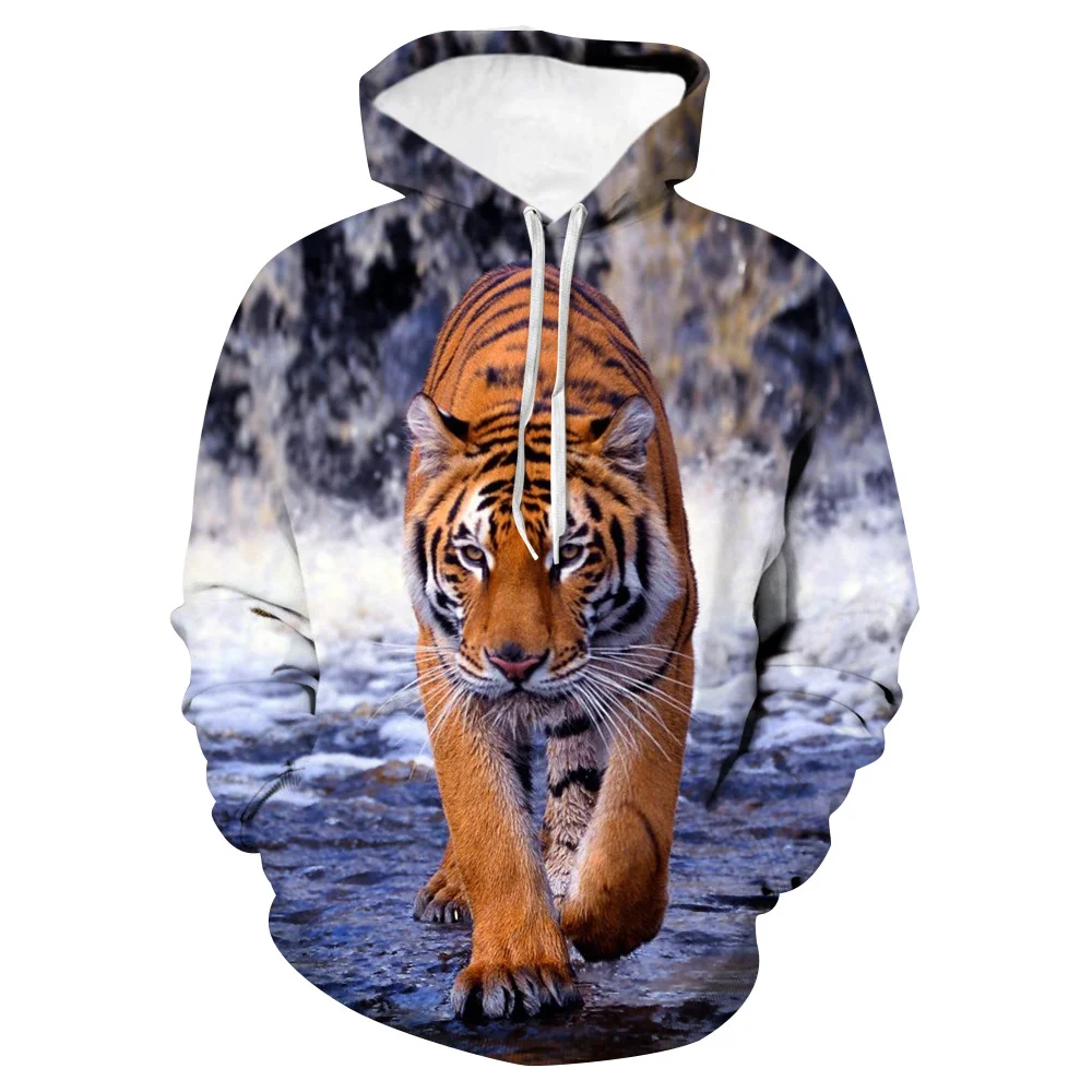 Мужские толстовки, Свитшот в стиле хип-хоп, Забавный 3D тигр, Лев, ...