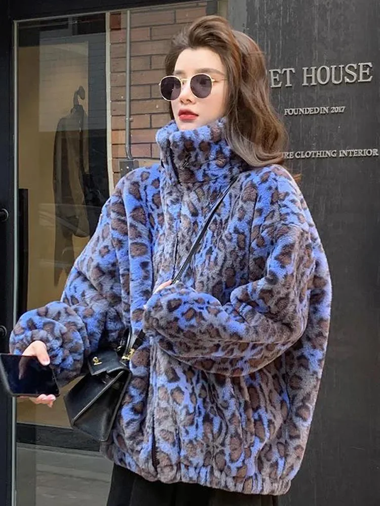 Женская зимняя куртка из искусственного меха с леопардовым принтом ...
