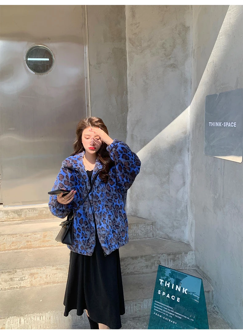 EWQ пальто с леопардовой овечьей шерстью, осень и зима, Корейская с...