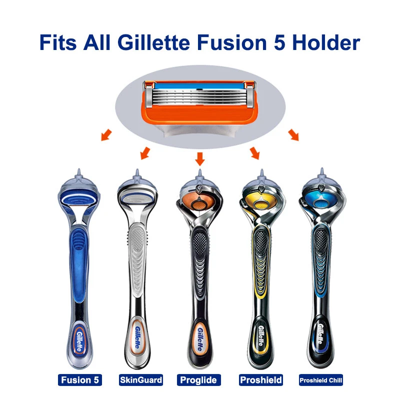 Лезвия бритвы подходят для Gillette SkinGuardand allGillette Fusion 5 серий ручек. Они являются заменителями оригинальных лезвий.