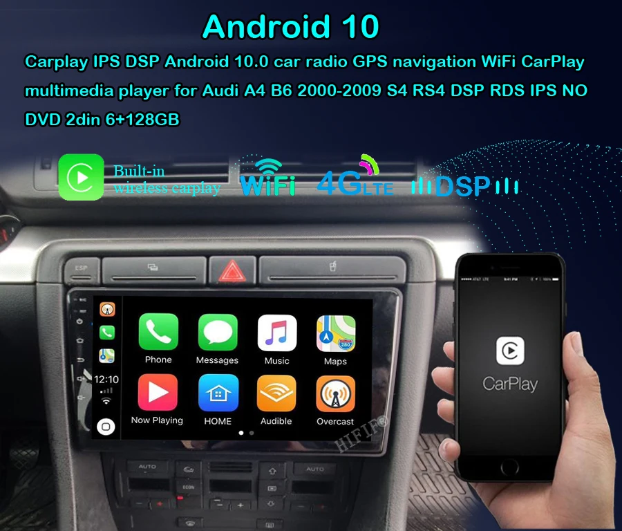 Автомобильный DVD-плеер 6G + 128G 2 Din 9 ''Android 10 Ouad Core для Audi A4 B6 B7 S4 B7 B6 RS4 2002-2008 RS4 B7 SEAT Exeo 2008-2012
