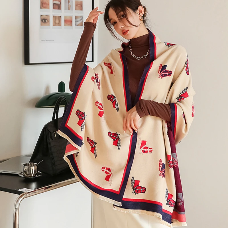 Роскошный зимний шарф, женские Кашемировые палантины, дизайнерская теплая шаль с принтом лошадей, одеяло для ldaie, женские шарфы, толстые палантины Bufanda