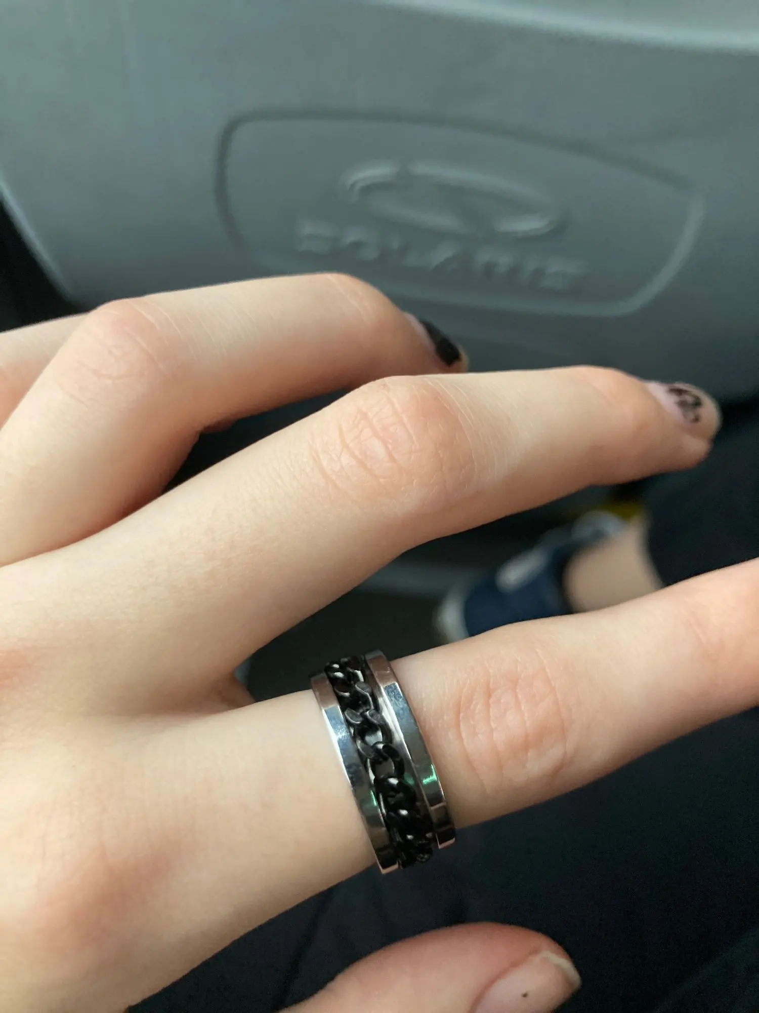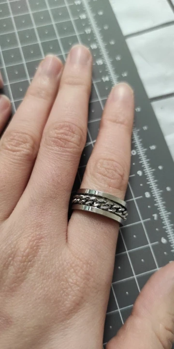 Хорошо, прибыл довольно быстро. Но он совсем не вращается. Внешнее кольцо немного изогнуто, так что оно влияет на спиннинг. Это довольно много просто застревает в одном месте. Также немного великоват для моего пальца.