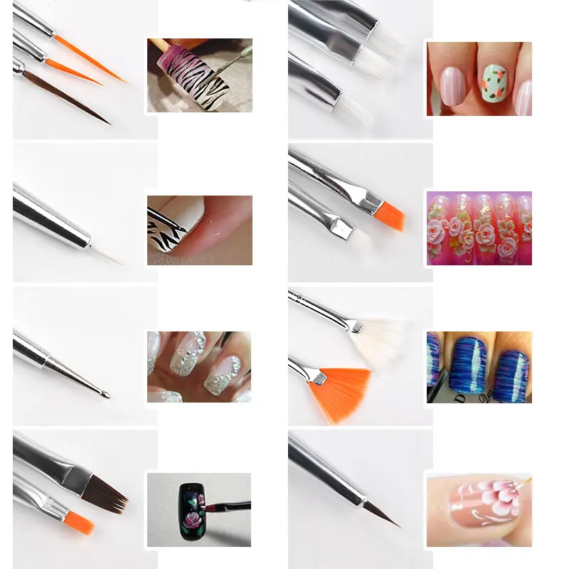 12 шт ногтей искусство кисти нажмите с силой так вентилятор дизайн акриловый строитель обувь на плоской подошве с украшением в виде кристаллов для рисования Рисование по дереву-образная гвоздь для ногтей УФ-гель набор инструментов для маникюра