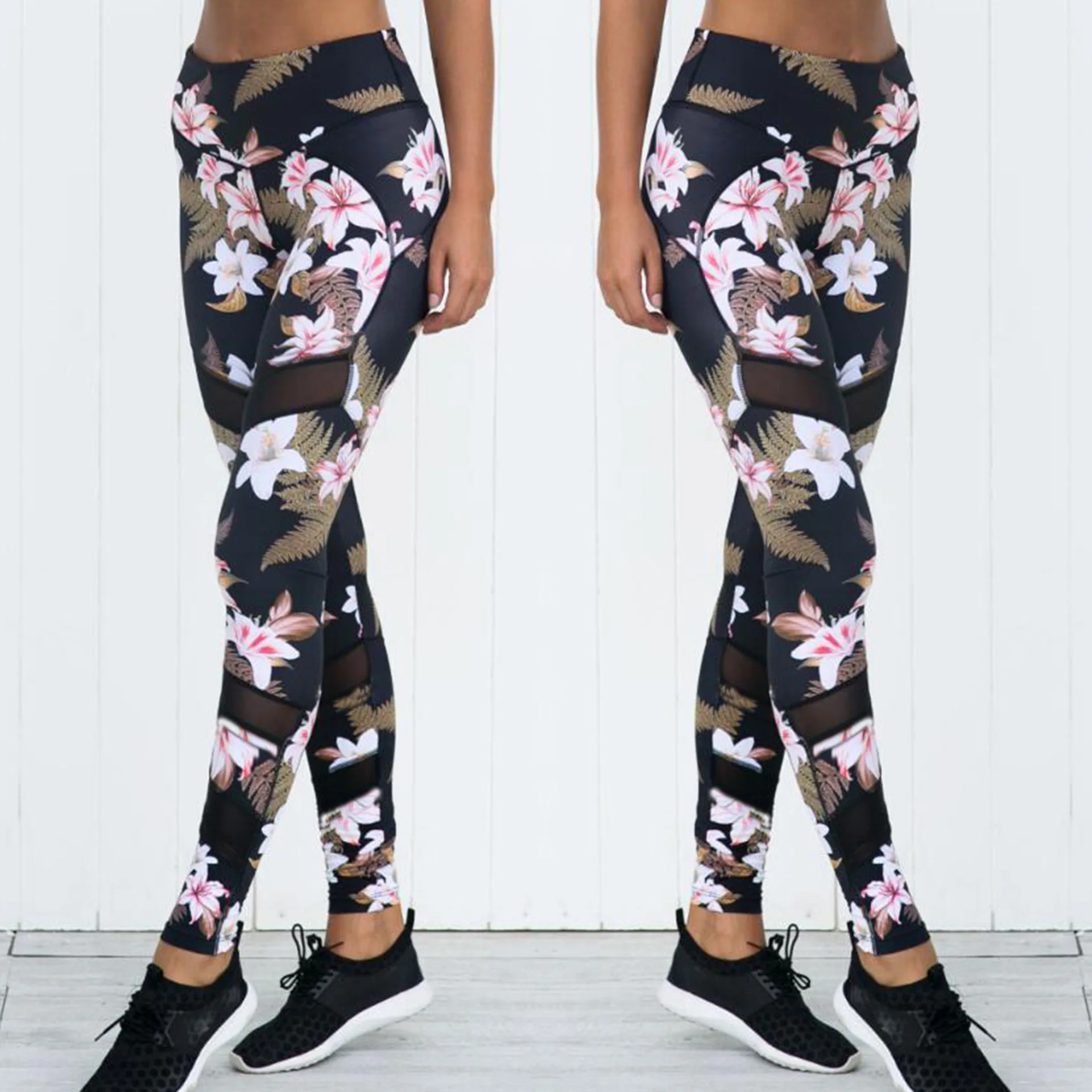 Женские сетчатые Лоскутные Спортивные Леггинсы с высокой талией, трико, брюки, однотонная Спортивная одежда для женщин, спортивные штаны с эффектом пуш-ап для йоги