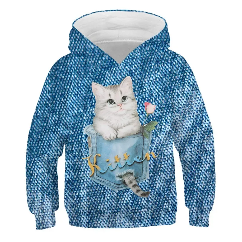 Модные толстовки с котом, толстовка с капюшоном для девочек-подрост...