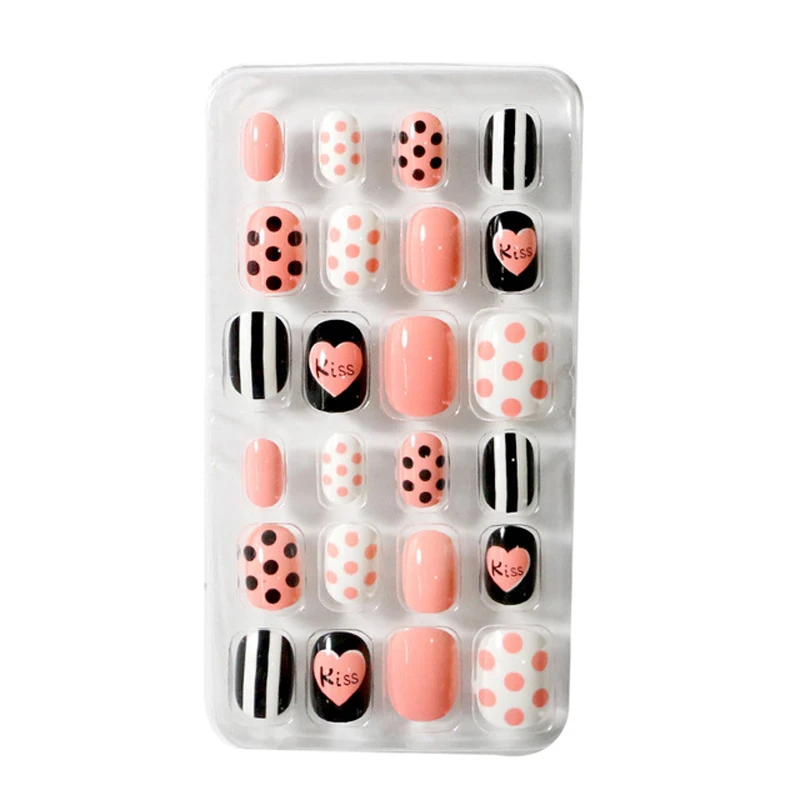 24 шт., Детские накладные ногти, шпильки, яркие цвета, накладные ногти, УФ-гель для маникюра, легко наносятся на искусственные ногти, салоны для девочек, Нейл-арт