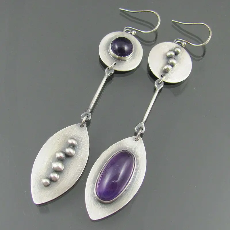 Винтажные длинные висячие серьги с фиолетовым камнем для женщин ант...