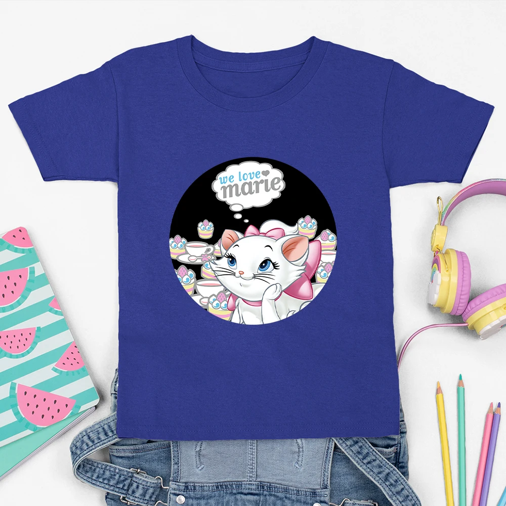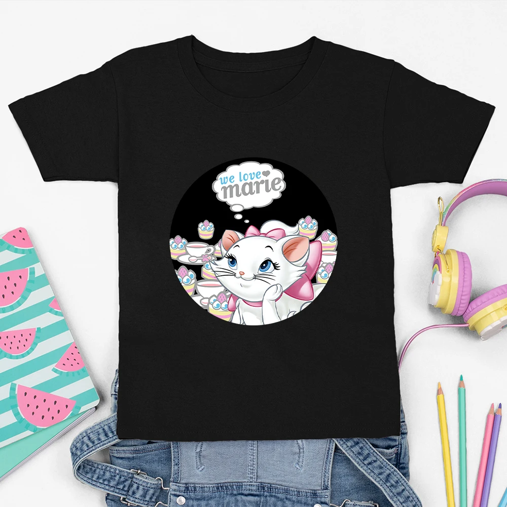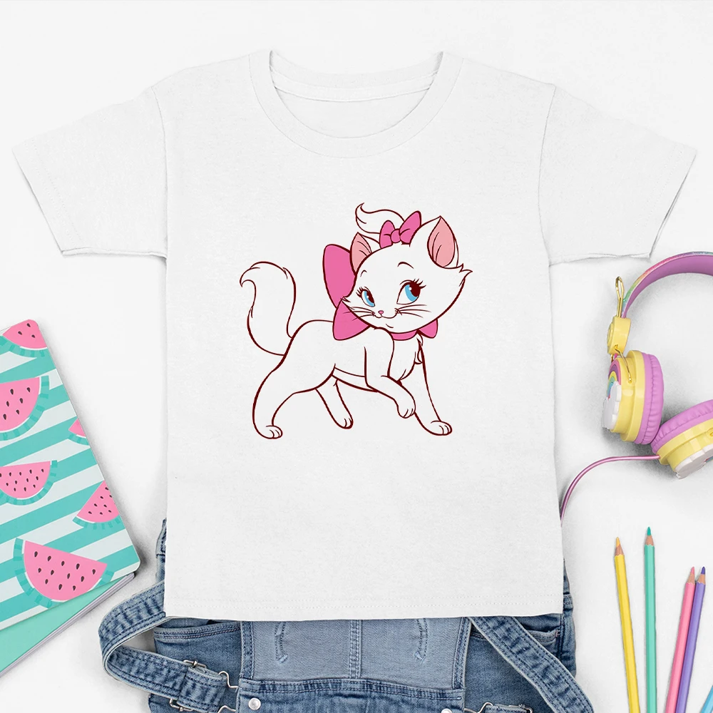 Одежда для девочек с изображением кота Мари Disney, футболка с коро...