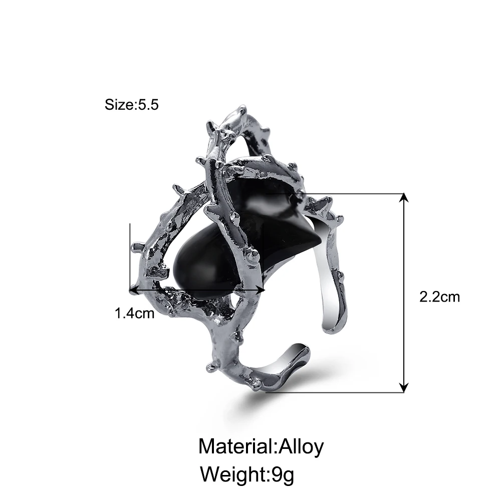 Комплект женских колец в стиле панк, готика, черное сердце, винтажн...