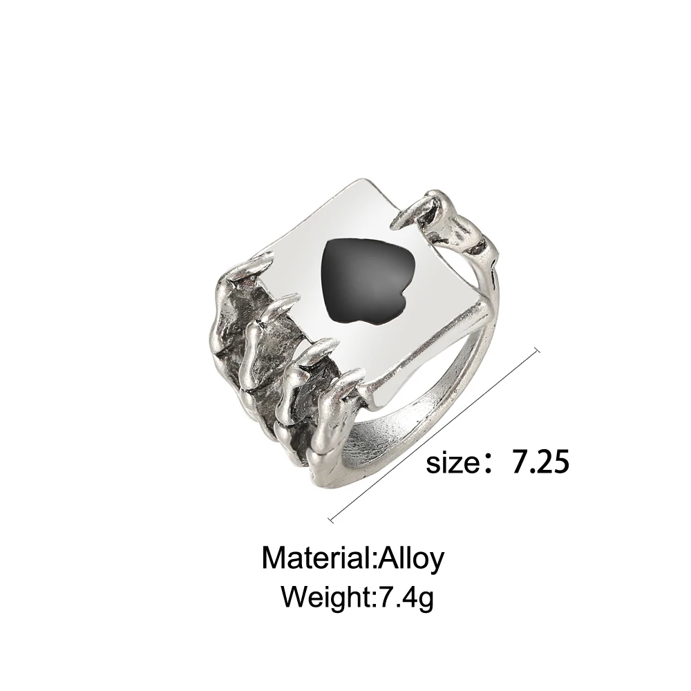 Набор колец в стиле панк для женщин покер черное сердце Готический ...