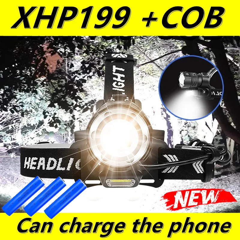 Налобный фонарь XHP199, светодиодный, аккумуляторный, 18650 Usb