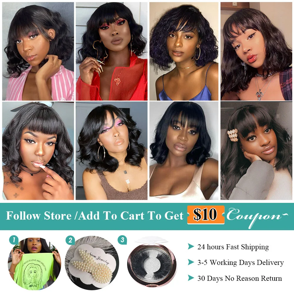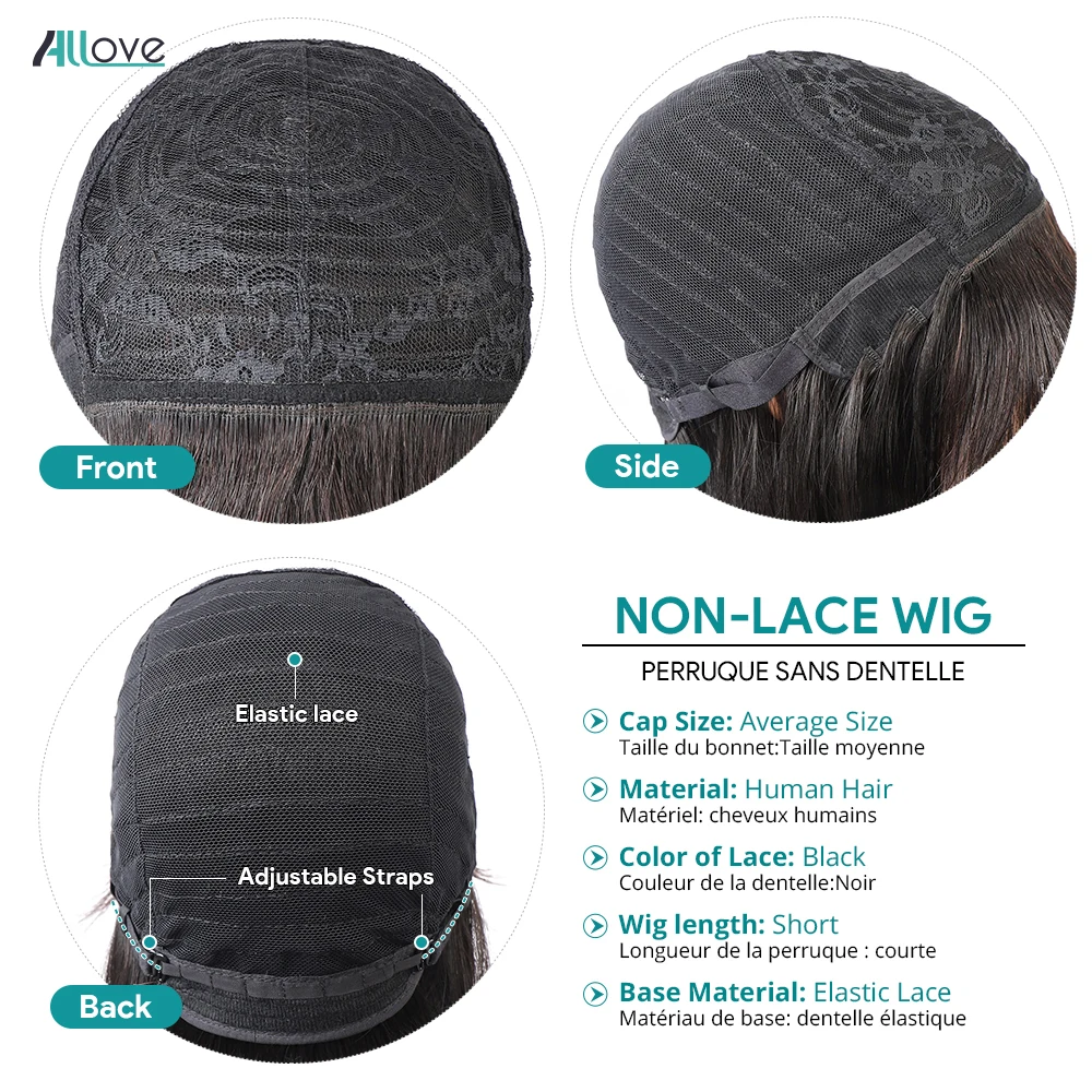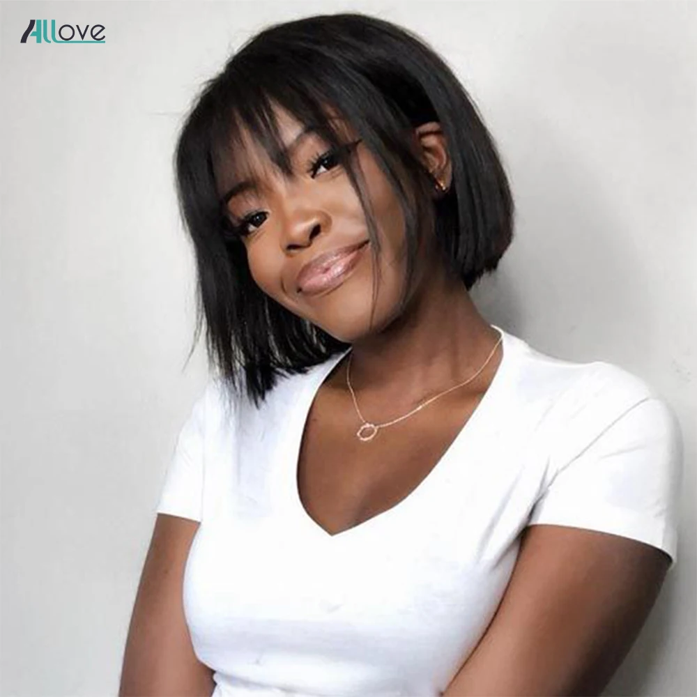Парик Allove Bob с челкой, прямые короткие парики боб, Бразильский бесклеевой парик, парик Remy с тупым отрезом, парик для женщин ручной работы