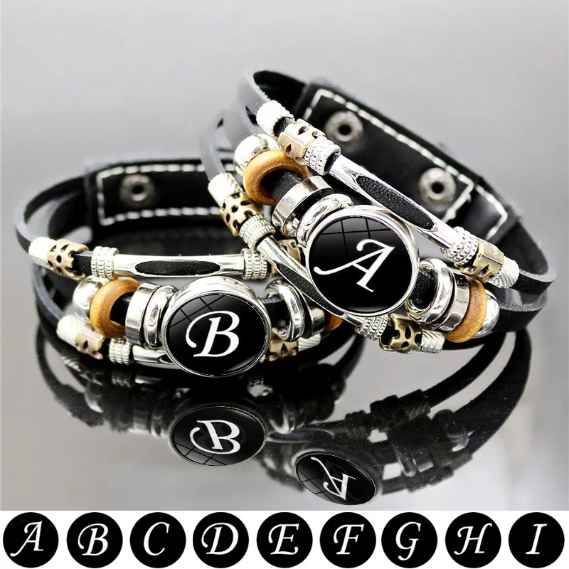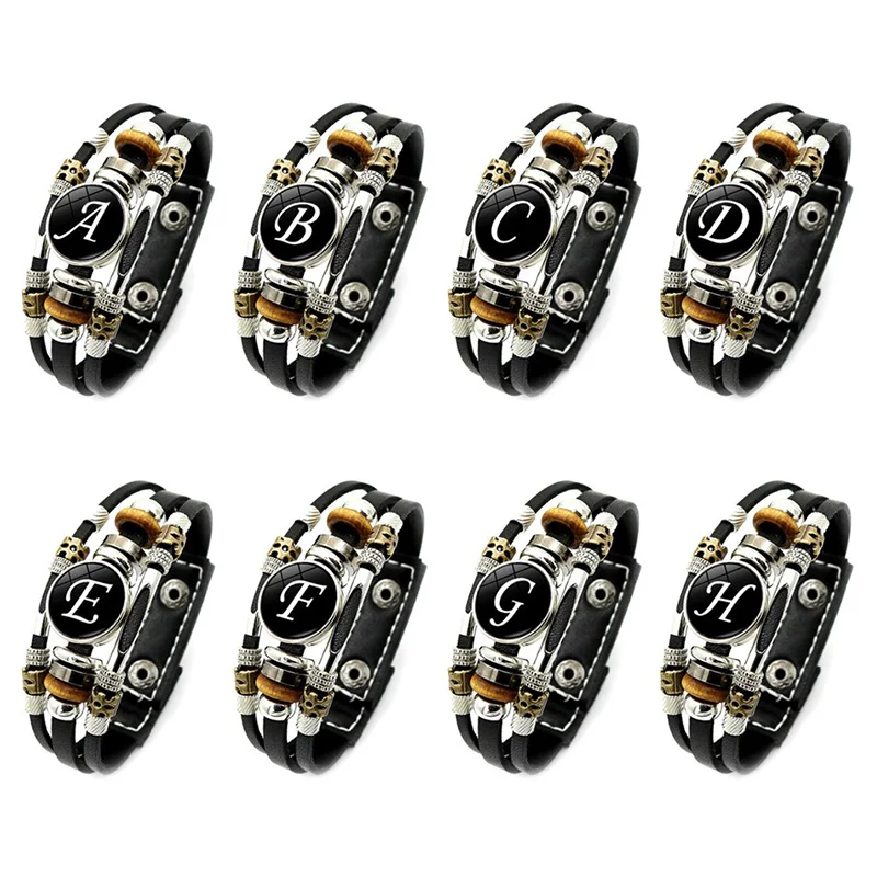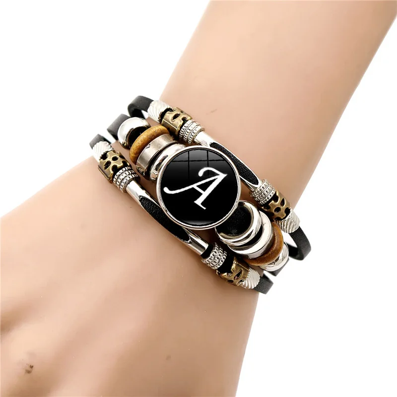 Многослойный кожаный браслет в стиле панк с 26 надписями