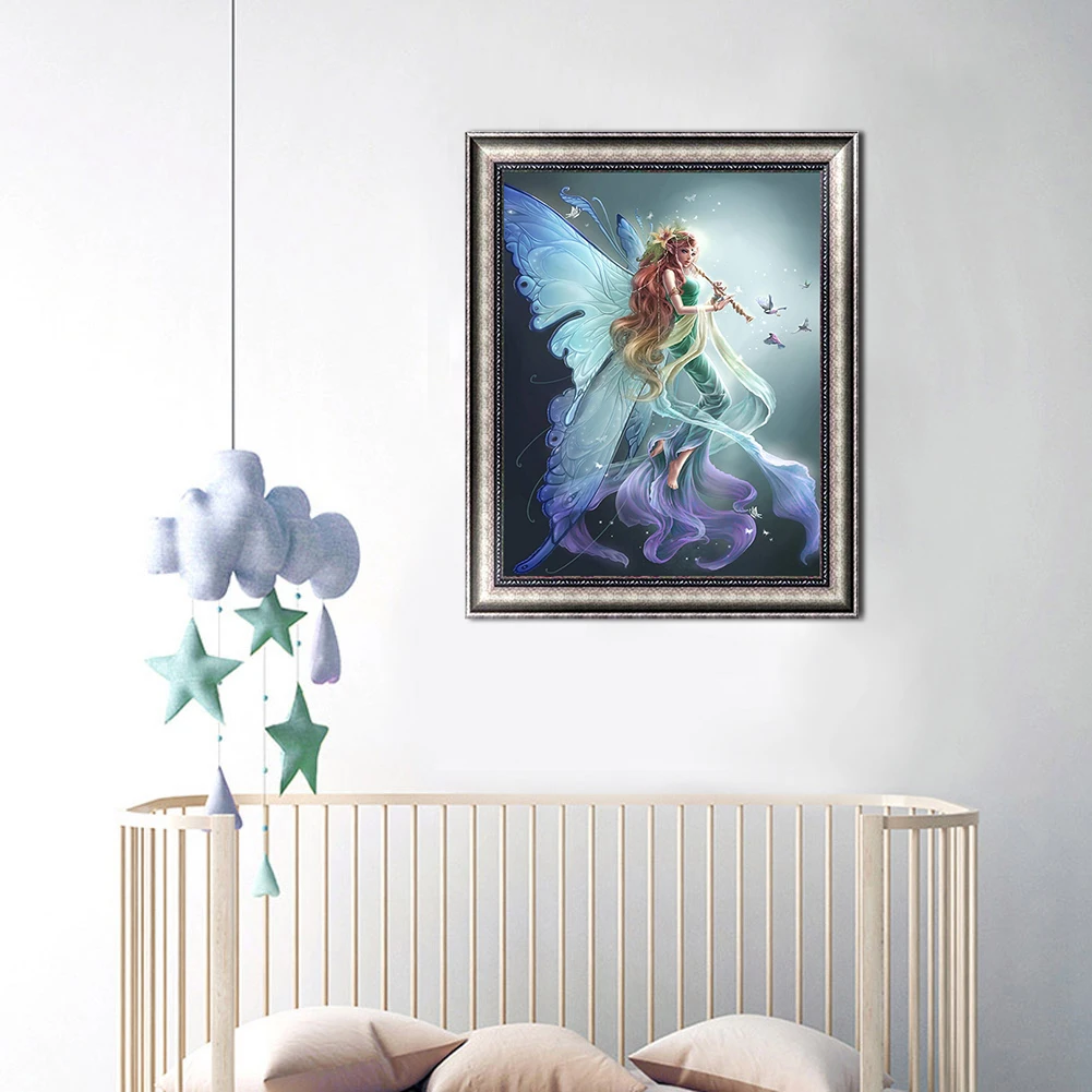 Алмазная 5D картина сделай сам, Фея бабочек, круглая вышивка, мозаика, вышивка крестиком, украшение для дома, рождественский подарок
