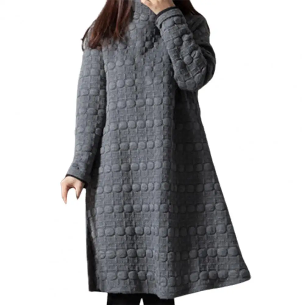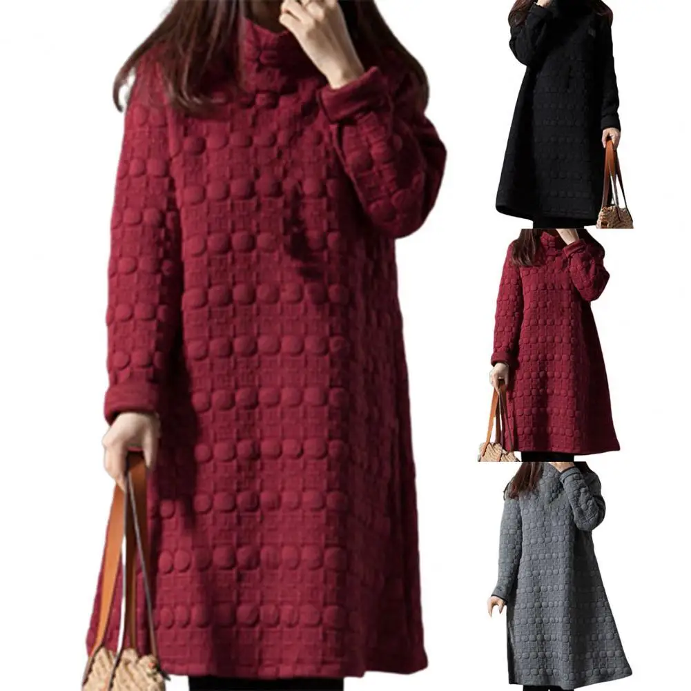Женское платье, однотонное, со стоячим воротником, повседневное, свободное, до колена, зимнее платье для повседневной носки