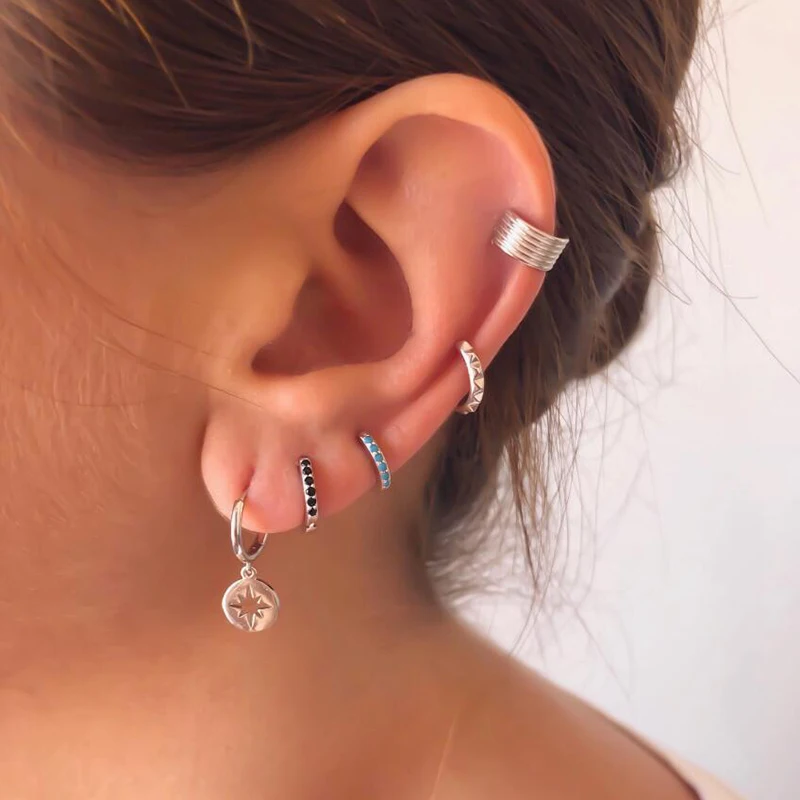 Автоклав 925 стерлингового серебра серьги, Надеваемые На ушной хрящ...