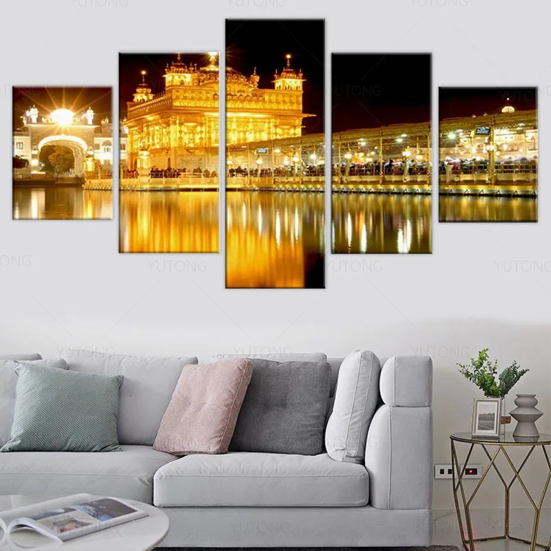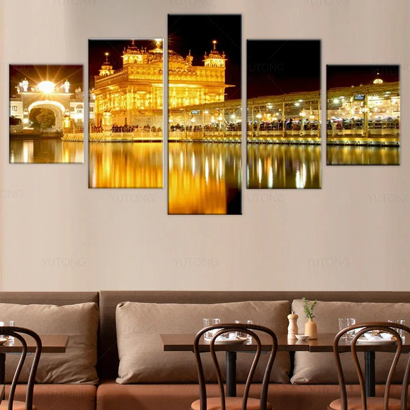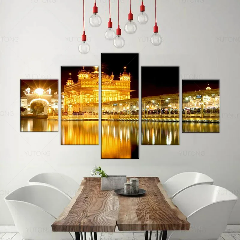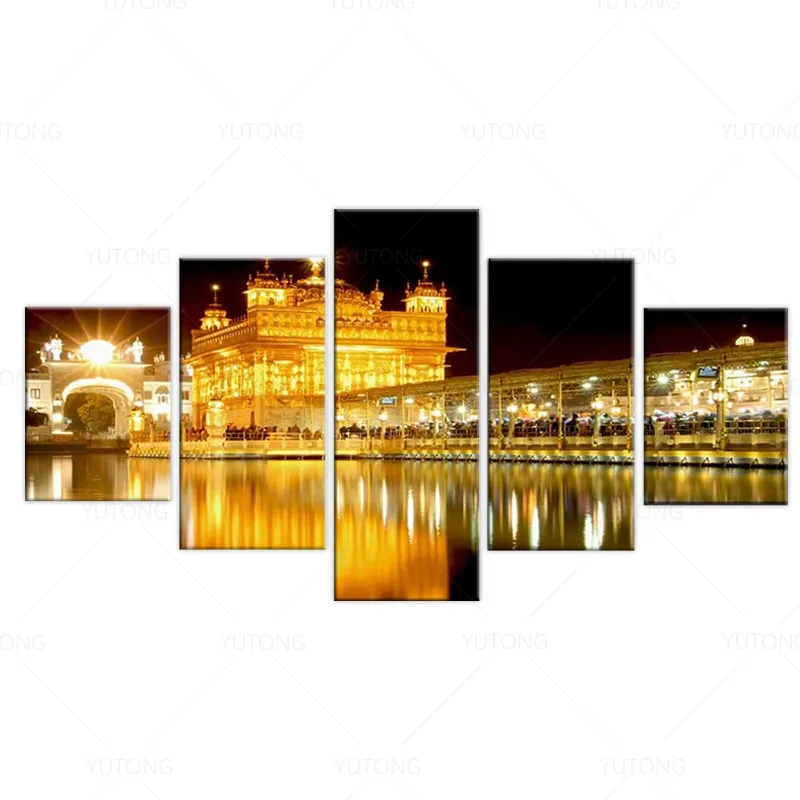 5 шт. сикх холст настенное Искусство Золотой храм в амритсаре картина индийские фотографии рассвет зеркальный вид плакат печать художественное оформление домашний декор