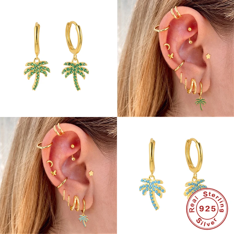 Женские серьги-кольца в виде кокосового дерева, из серебра 925 пробы