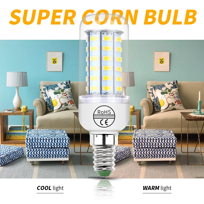 Особенности:Низкое потребление, высокая яркость.Энергосбережение и экологичность, способствует переработке.Низкое тепловыделение, отсутствие УФ или ИК-светильник.Сейсмический, ударопрочный, нетепловое излучение, безопасный и стабильный, надежныйПодходит для домашнего, офисного и выставочного освещенияОчень низкий нагрев, кроме экономии энергии на светильникОн имеет длительный срок службы, никаких опасных материалов.Мгновенный запуск, не мигает. Прочный, ударопрочный.Экономьте мощность больше, чем обычные лампы.Изготовлен из высококачественных материалов.Спецификация:Тип цоколя: E27 / E14 / GU10 / B22 / G9Напряжение: AC200V-240VСветодиодный Тип: SMD 5730Количество СВЕТОДИОДНЫЙ: 24 светодиодный s/36 светодиодный s/48 Светодиодный s/56 светодиодный s/69 светодиодный s/72 светодиодный sСветильник Цвет: теплый белый/холодный белый/синийЦветовая температура: 6000-6500K (холодный белый); 2800-3500K (теплый белый)
