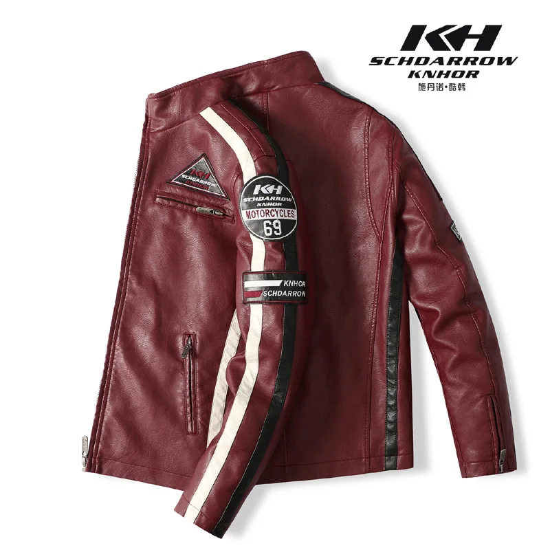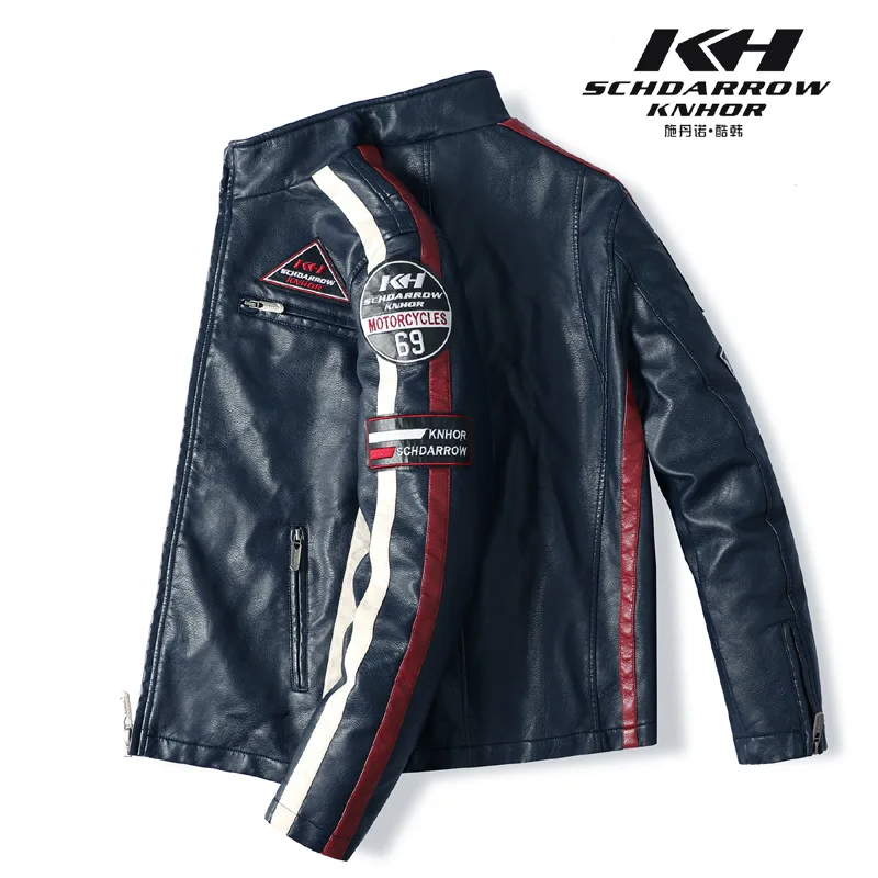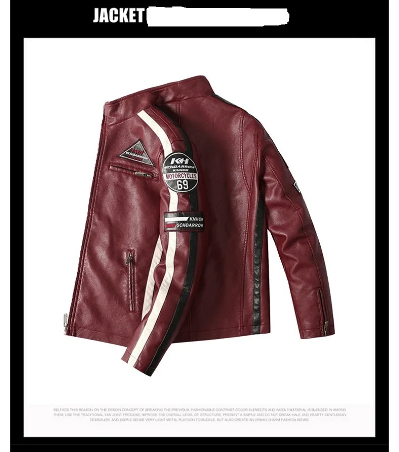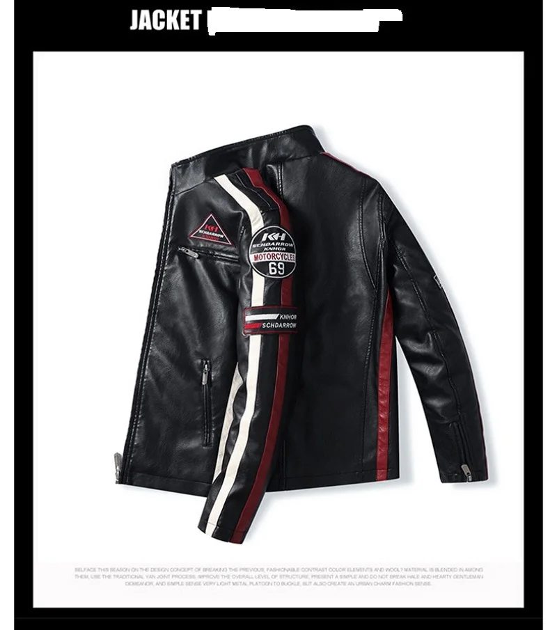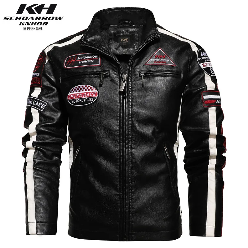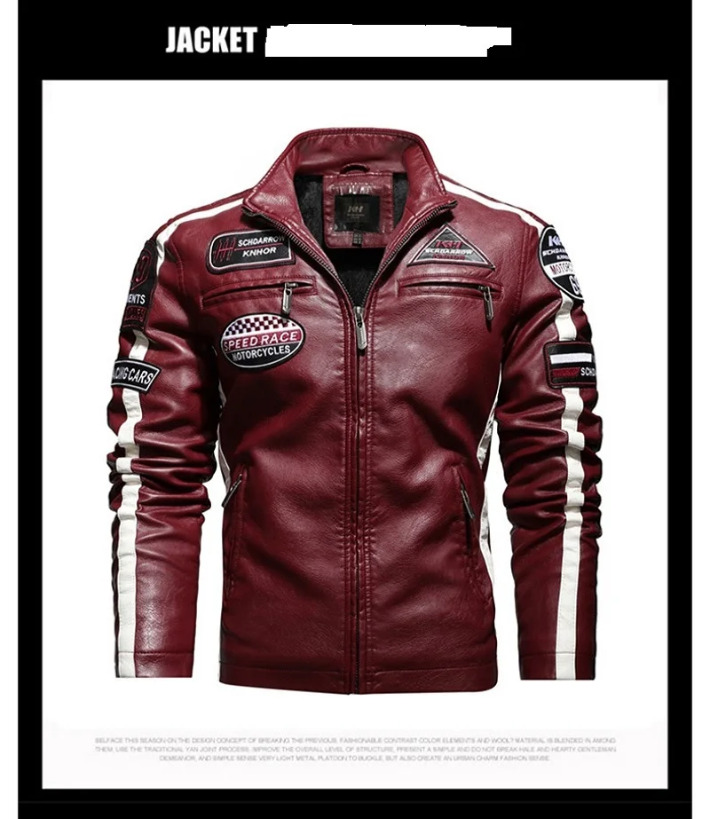 Мужская винтажная мотоциклетная куртка, модная новая кожаная куртка с вышивкой, европейские размеры, Зимние флисовые куртки из искусственной кожи, 2021