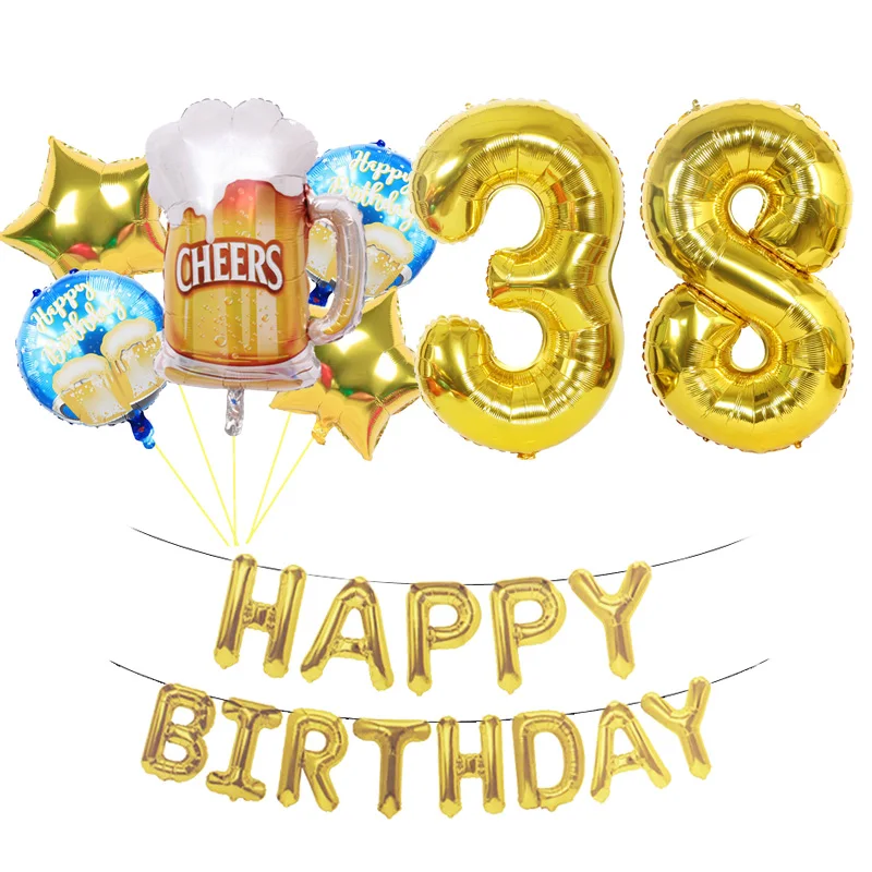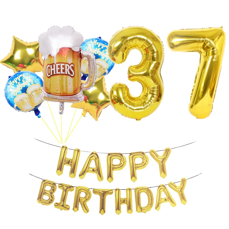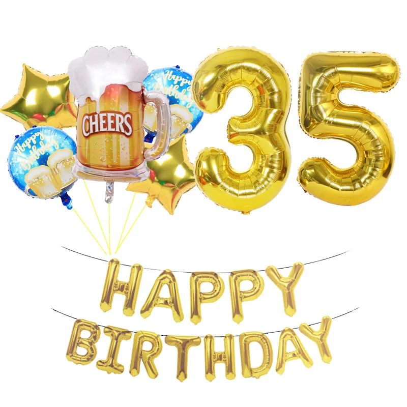 Воздушные шары на день рождения 20 шт., кружка для пива, вина, бокалов, цифр, баннеры, украшения для вечеринки, 31 32 33 34 35 36 37 38 39 лет