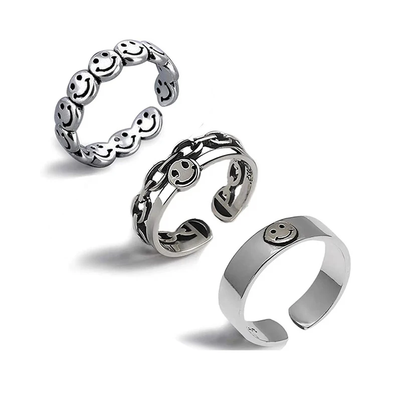 3 шт./компл., Трендовое черное кольцо миди, набор для женщин, Moon Sun Smile, геометрические кольца на палец, модные богемные ювелирные изделия в стиле панк
