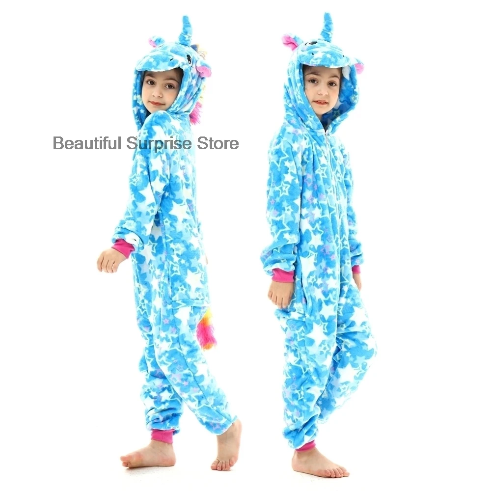 Пижама-кигуруми с капюшоном в виде единорога для детей, Детский кос...