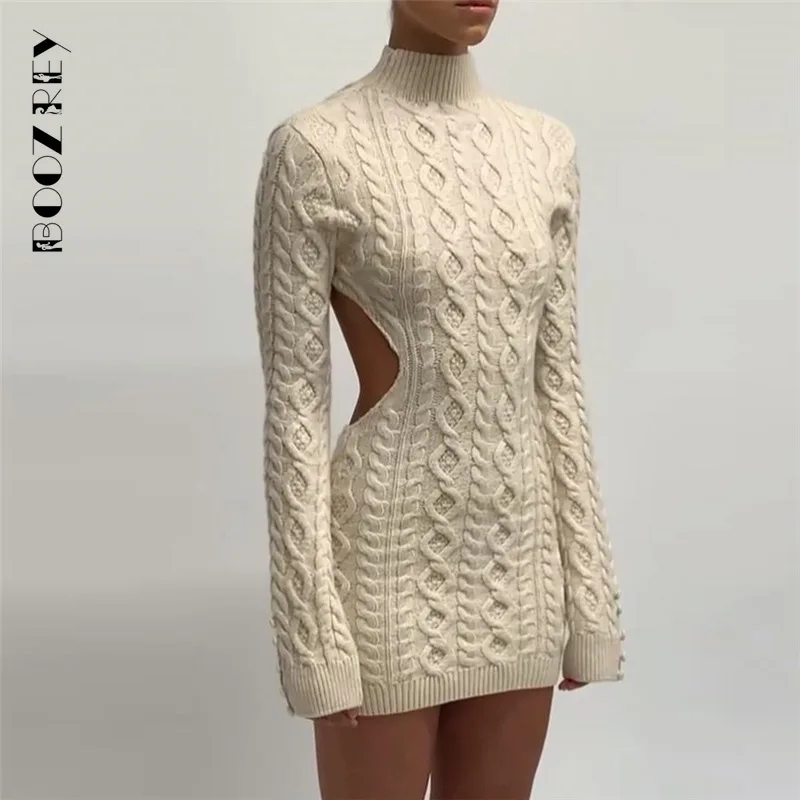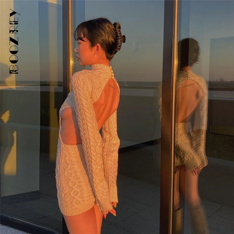 BoozRey осеннее вязаное мини-платье для женщин одежда базовое сексуальное шерстяное платье с открытой спиной осень зима роскошное рождественское платье