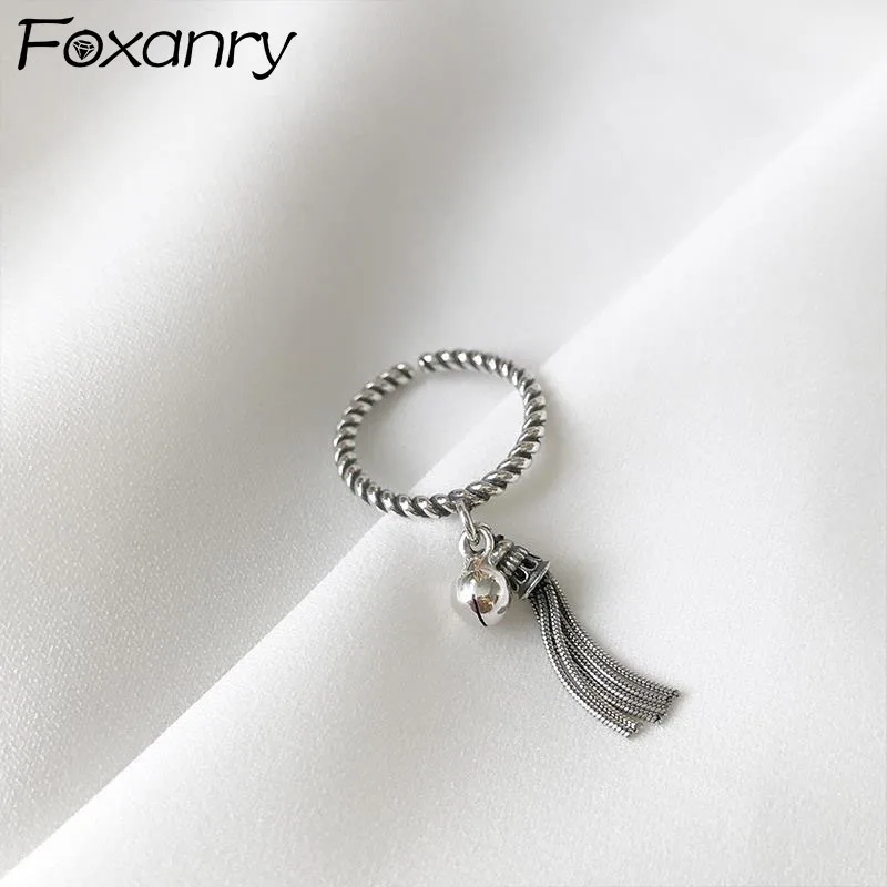 Кольца FOXANRY 925 для женщин, модные элегантные винтажные креативные старые колокольчики, кисточки, скрученные текстурные украшения для вечеринок