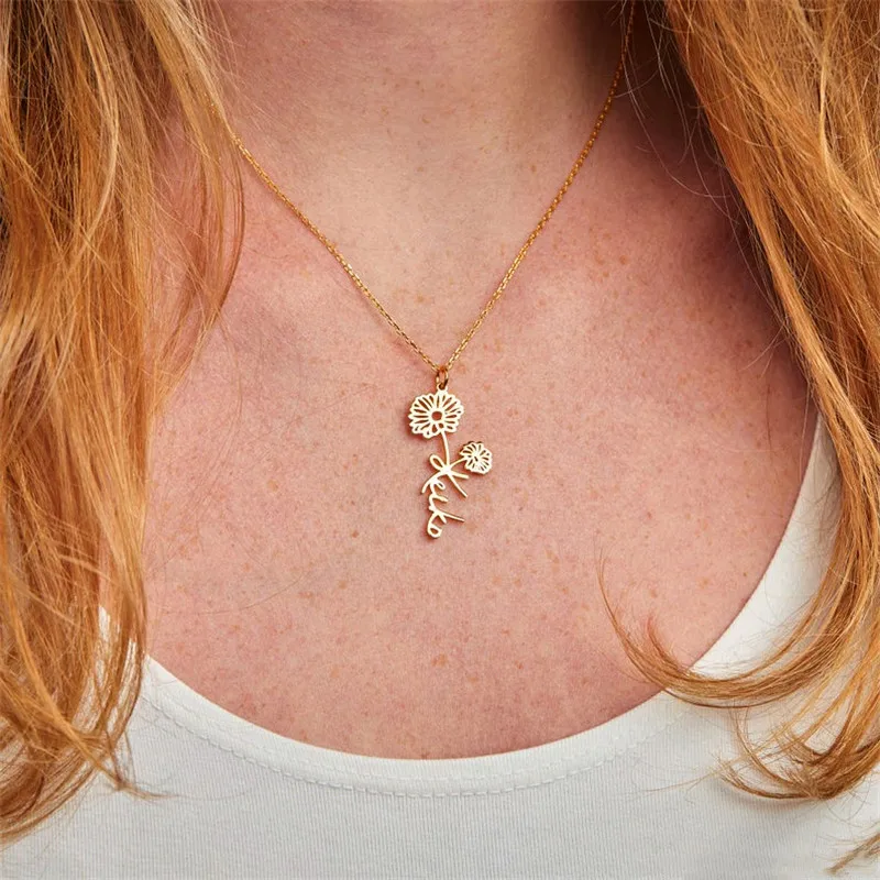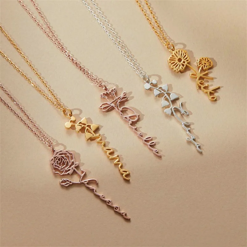 Ожерелье с именем на заказ, стильное рукописное письмо с цветком, индивидуальное имя, ювелирное изделие, колье в подарок, бесплатная доставка