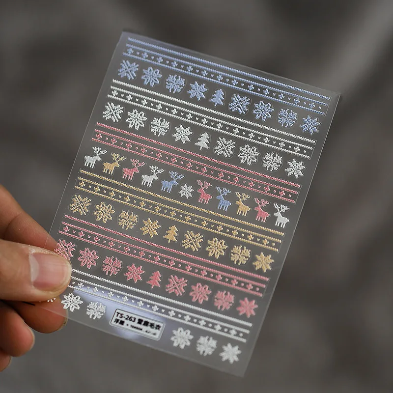 Новые японские наклейки для ногтей 5d, наклейки для ногтей, трехмерные наклейки в виде снежинок, Рождественский дизайн ногтей