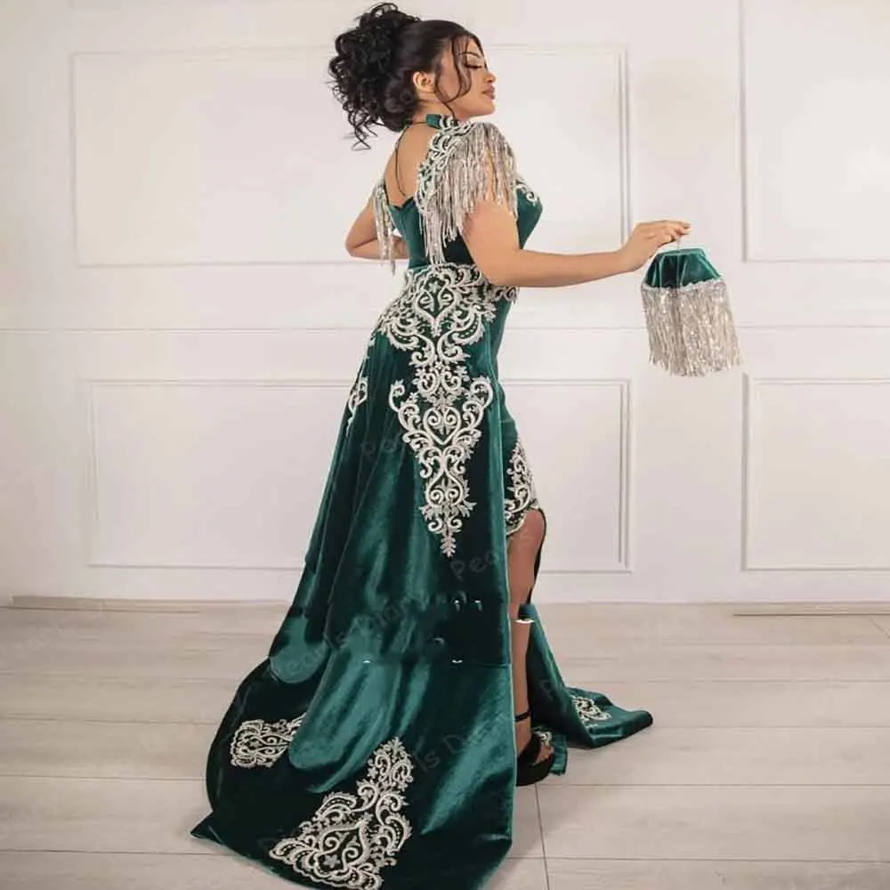 Элегантное зеленое вельветовое вечернее платье, 2022 сексуальное длинное платье русалки с разрезом, искусственное арабвечерние нее платье Дубаи