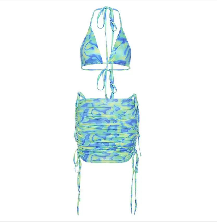 Женский комплект из двух предметов HAASKEW, пикантный топ с открытой спиной и юбка с рюшами на завязках, летний костюм для отпуска без трусиков