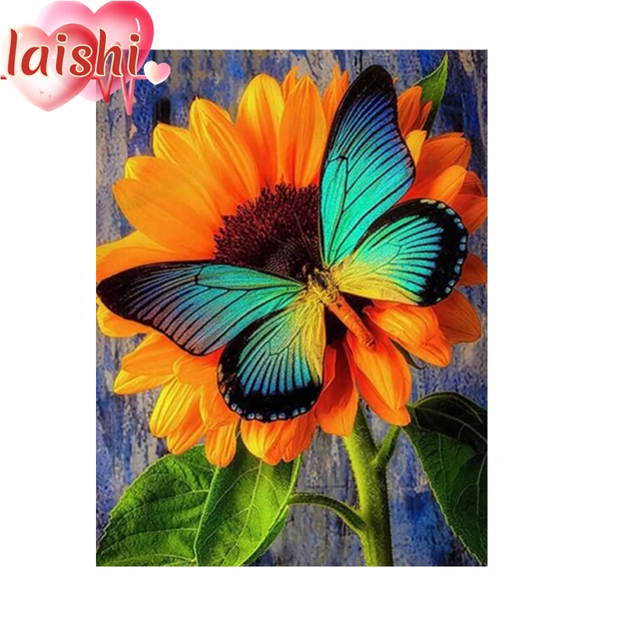 Алмазная 5D картина сделай сам с бабочкой подсолнухом, Набор для вышивки крестиком, полная круглая вышивка, мозаика, искусство, картина стразы, Декор