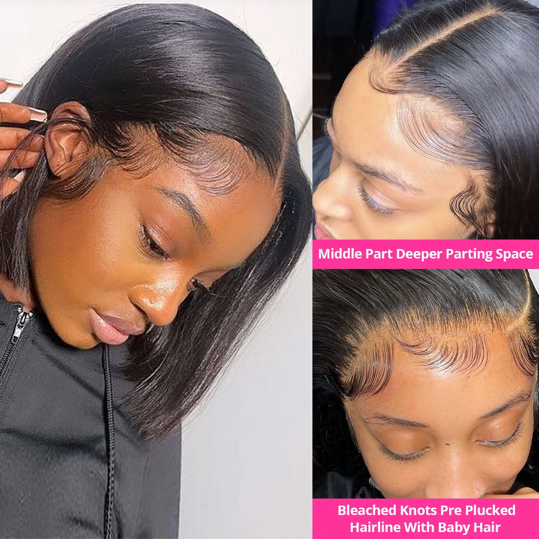 Парики короткие Боб, стрижка Пикси, 13x6x1, бразильские прямые пари...