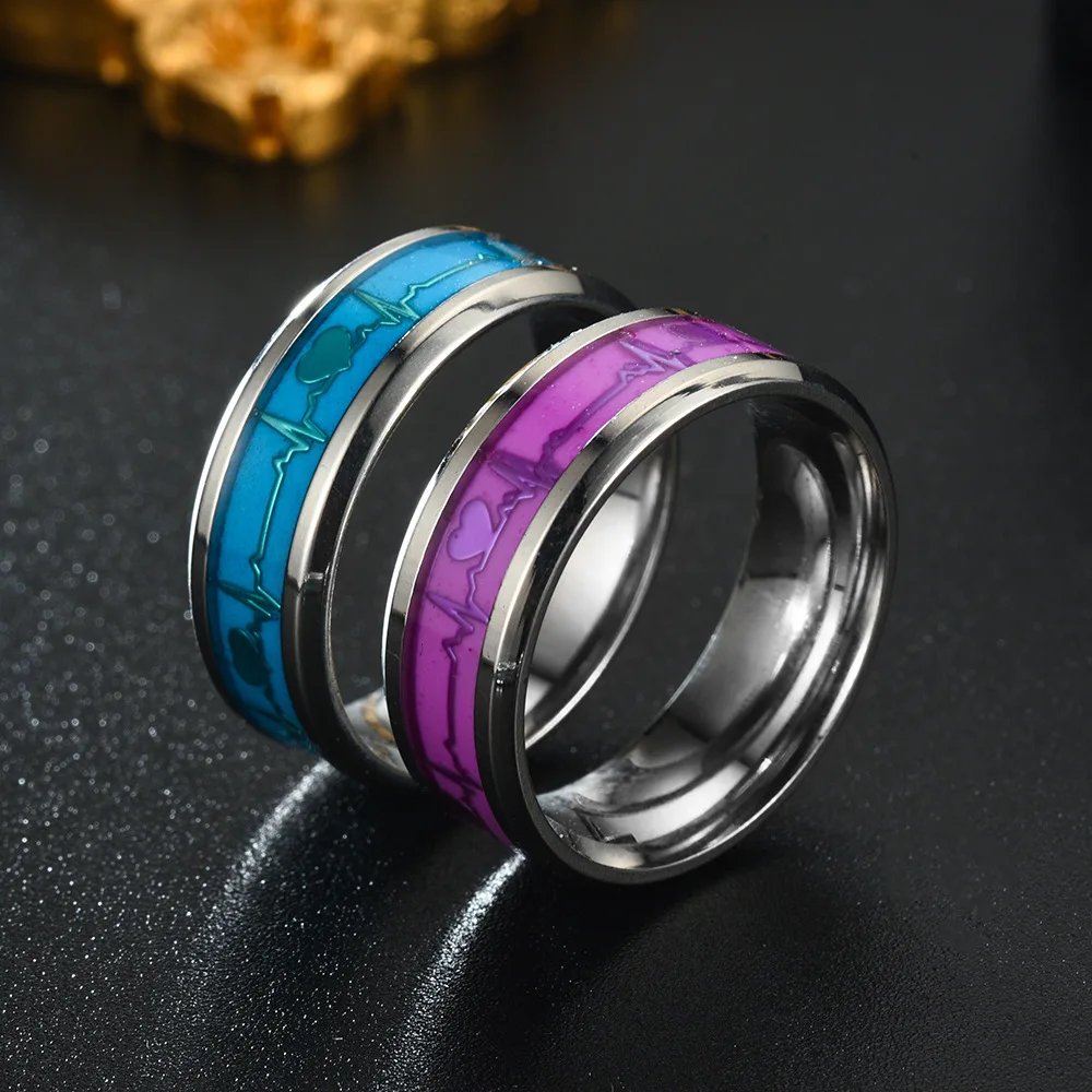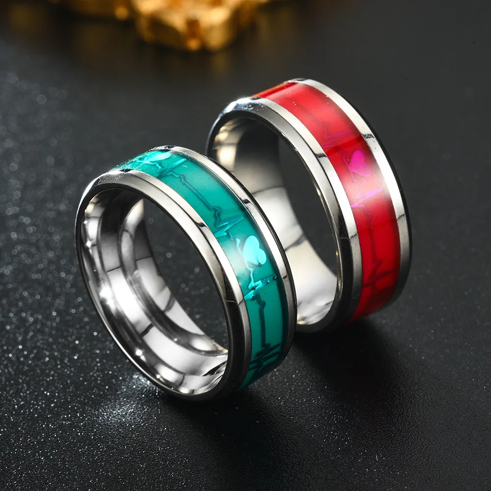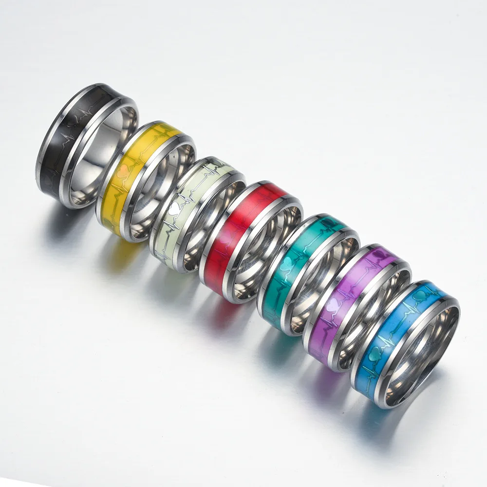 7 цветов светящееся кольцо ECG из нержавеющей стали обещают измерение сердцебиения для мужчин и женщин цветные яркие аксессуары Оптовая продажа