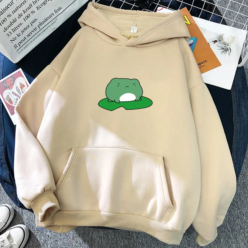 Женская толстовка в стиле Харадзюку с принтом лягушки, пуловер с ка...