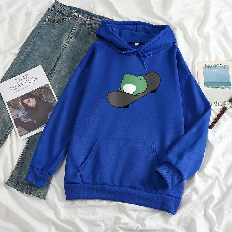 Милые толстовки с рисунком скейтборда лягушки, Модный женский пулов...
