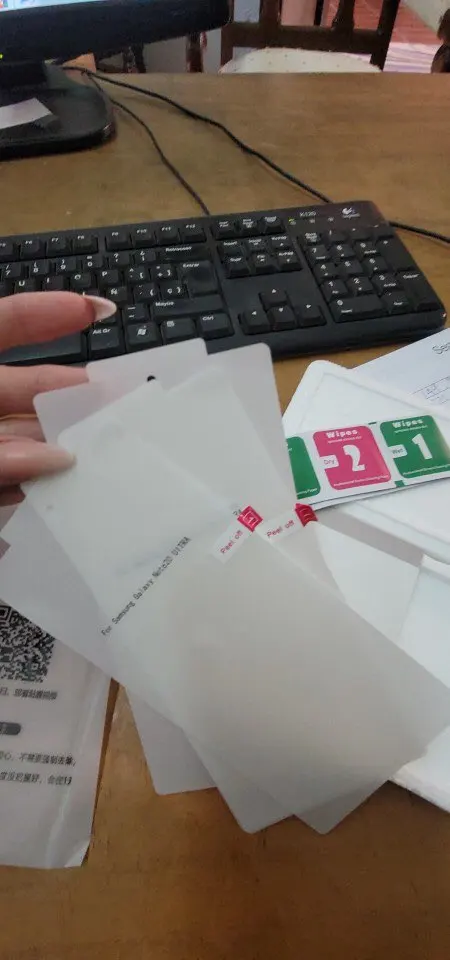 Транспортировка хорошо защищена, легко наносится и центрируется благодаря липкой центральной части, которая хорошо центрирует ее перед тем, как надевать, включает салфетки, которые не очень хорошо очищаются, и шпатель, чтобы наклеить его без пузырьков, который очень хорошо ложится, быстрая доставка