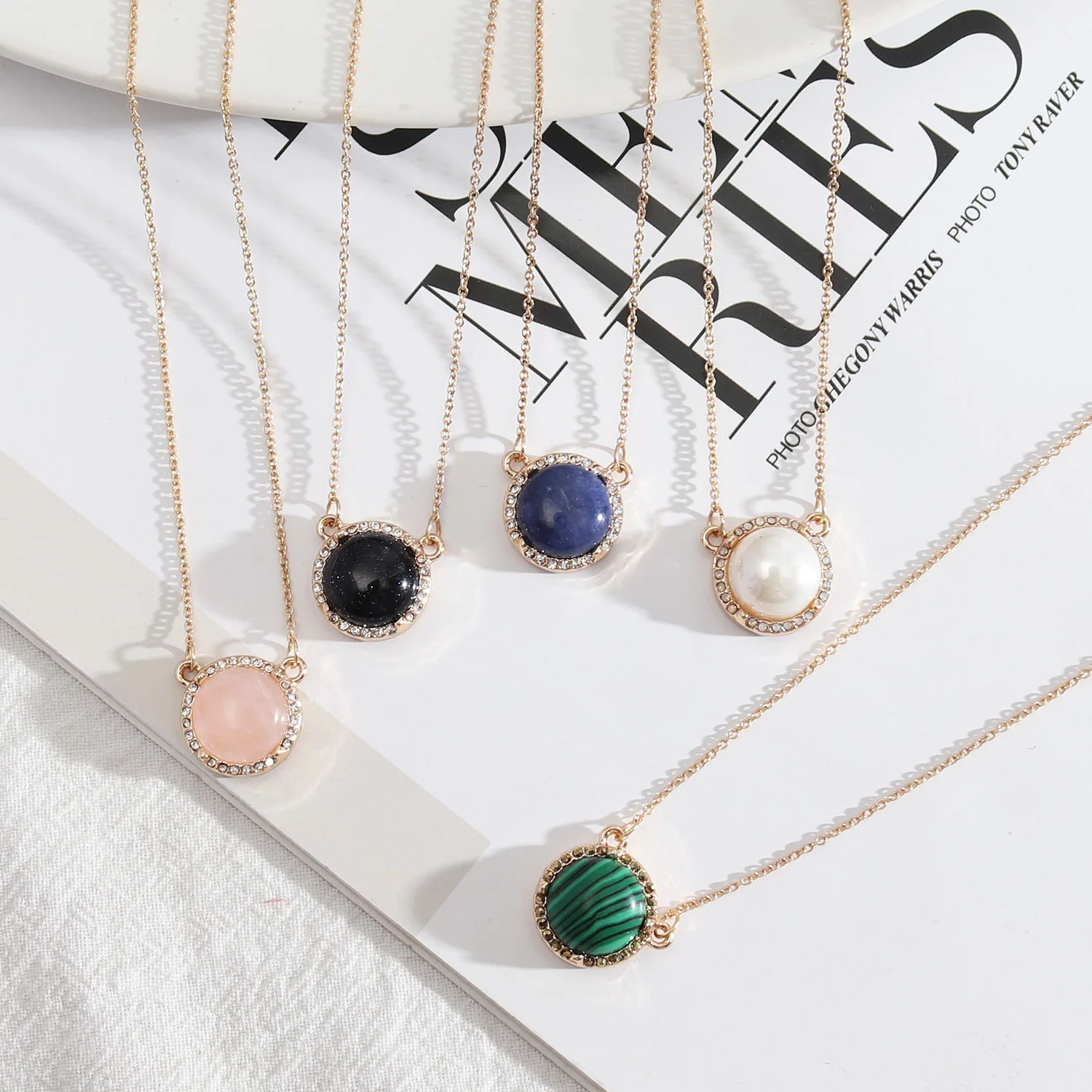 15 мм круглый Лазурит, жемчуг, малахит, розовый натуральный камень, кварцевое бриллиантовое ожерелье, геометрические аксессуары, ювелирные изделия