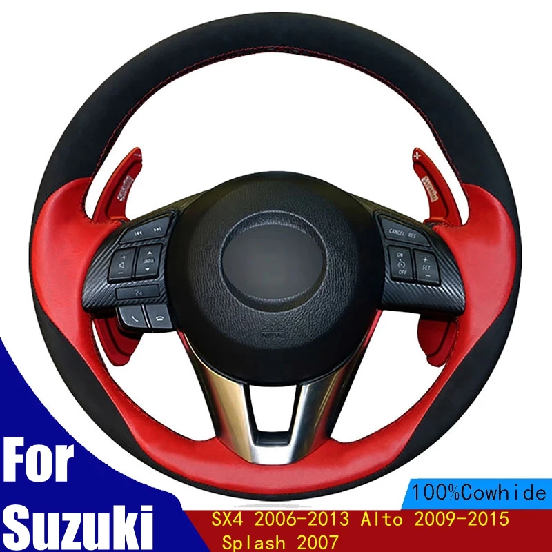 Прошитая вручную искусственная черная замша красная натуральная кожа для Mazda 3 Axela Mazda 6 Atenza Mazda 2 Чехол рулевого колеса автомобиля CX