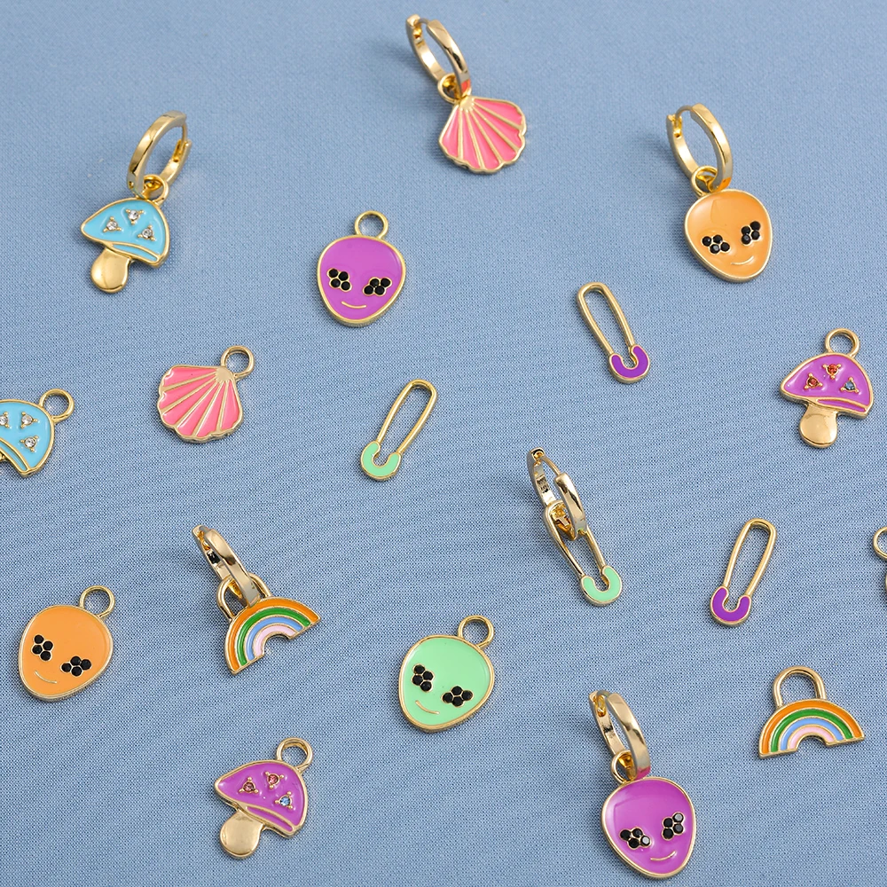 Модные женские серьги-подвески в форме цветка радуги в форме гриба с булавкой для женщин, разноцветные маленькие серьги в форме Инопланетянина с улыбкой, массивные ювелирные изделия