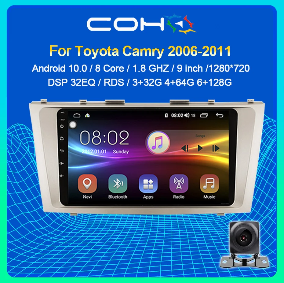 Автомобильный радиоприемник COHO для Toyota Camry 2006-2011, мультимедийный видеоплеер, навигатор GPS Blu-Ray 1280*720, Android 10, 2din