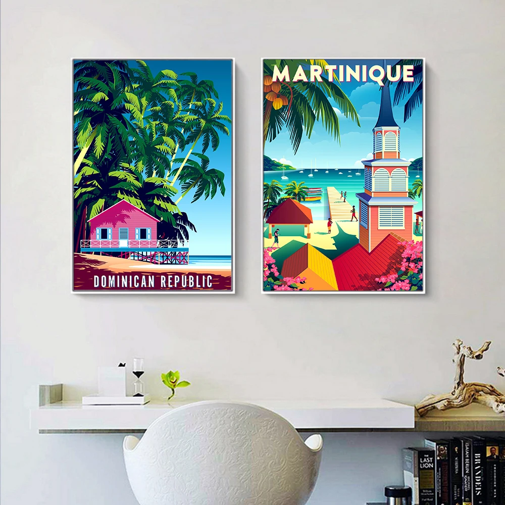 Постер в стиле ретро для путешествий с изображением Морского Пейзажа, мультяшный цветной городской холст, картины на холсте Гваделупа, настенные картины для гостиной, домашний декор icon star icon star icon star icon star icon star